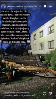 W dalszej części relacji brat Rafała Zawieruchy wyznał, że w chwili zdarzenia przebywał w domu rodziców wraz ze swoimi dziećmi i jest bardzo wdzięczny za to, że akurat tego dnia postanowił ich odwiedzić: