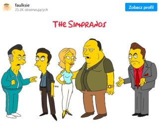 Członkowie rodziny Soprano doczekali się swoich animowanych wersji w stylu serialu Simpsonowie. Charlie Faulks, znany na Instagramie jako @faulksie, często tworzy autorskie ilustracje przedstawiające animowane wersje znanych postaci popkultury. Pod koniec września internauta opublikował swój fanart pod tytułem The Simpranos, na której swojej odsłony w stylu serialu Simpsonowie doczekali nie tylko Tony Soprano i jego żona Carmela (Edie Falco), ale też inni członkowie ich rodziny. Na ilustracji między innymi Jennifer (Lorraine Bracco), Pauline (Tony Sirico) i Christopher (Michael Imperioli). Warto wspomnieć, że @faulksie nie wykorzystał do projektu technologii AI i wszystko narysował samodzielnie. Jedno ze zdjęć z udziałem członków rodziny Soprano podpisał: