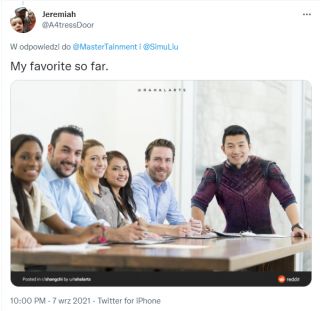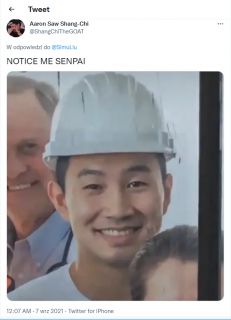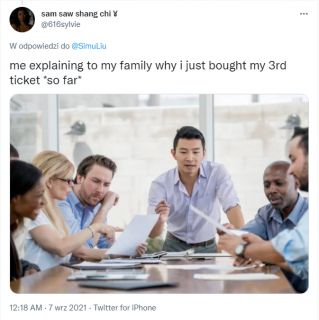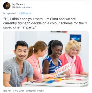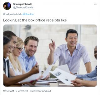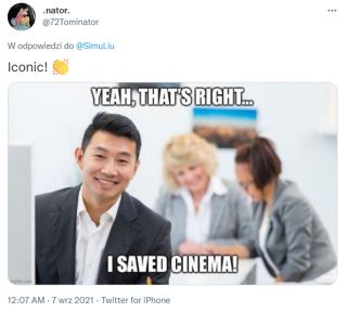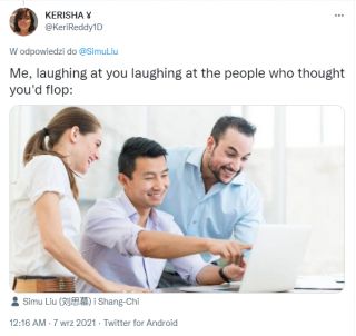 Simu Liu postanowił uczcić udany weekend Shang-Chi i legenda dziesięciu pierścieni na kinowych ekranach. W tym celu na swoim koncie na Twitterze opublikował zdjęcie stokowe, do którego pozował na początku swojej kariery. Przy okazji wyśmiewa tych, którzy nie wierzyli w sukces produkcji: „Śmieję się z ludzi, którzy myśleli, że będzie klapa”.