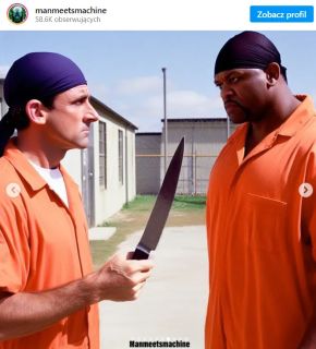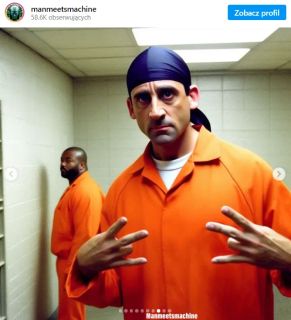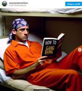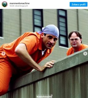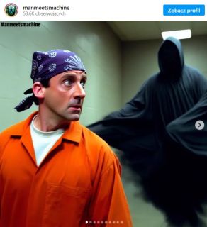 Serialowy Michael Scott pod koniec stycznia 2024 roku został gwiazdą kolejnych zdjęć stworzonych przez AI. Ich pomysłodawcą jest użytkownik Instagrama znany jako @manmeetsmachine. Ilustracje przedstawiają, jak mogłoby wyglądać życie dyrektora Dunder Mifflin, gdyby ten trafił do więzienia. Okazuje się, że poza spędzaniem czasu w celi na czytaniu książek, bohater według sztucznej inteligencji musiałby liczyć na nieprzyjemne spotkania nie tylko z kolegami z celi, ale również z... dementorami. Na niektórych ilustracjach pojawiają się bowiem zakapturzone postacie łudząco przypominające te, które strzegą Azkabanu, czyli więzienia znanego z serii Harry Potter. Ponadto, według AI Michael Scott wcale nie byłby jedynym pracownikiem Dunder Mifflin za kratkami. W więzieniu towarzyszyłby mu jego współpracownik, Dwight (Rainn Wilson).