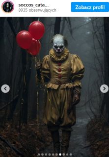 Pennywise stał się jeszcze bardziej przerażającym klaunem dzięki pomysłowi internauty, który prowadzi swój profil na Instagramie o nazwie @soccos_cataclysm. Internauta publikuje na swoim profilu projekty z udziałem bohaterów horrorów, które tworzy z pomocą sztucznej inteligencji. Pennywise również doczekał się własnych zdjęć wygenerowanych przez wirtualny generator obrazów o nazwie Midjourney. Projekt z jego udziałem składa się ze zdjęć, na których stoi na tle mrocznego bagna i trzyma w ręce balony.