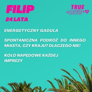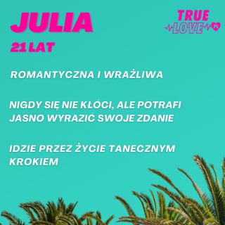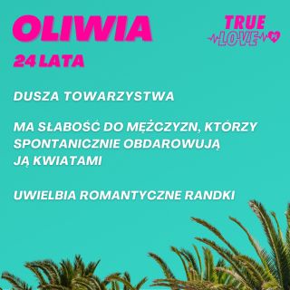 Reality show True Love można oglądać na kanale TVN7 oraz w Playerze od poniedziałku 27 lutego 2023 roku o godzinie 20:00. Program z udziałem 10 uczestników poszukujących miłości rozgrywa się w egzotycznej Kolumbii. Po raz pierwszy w historii programów randkowych wyjątkowo nie zobaczycie intryg, układów czy przemyślanych strategii, gdyż relacje uczestników będą opierać się wyłącznie na szczerości. Single i singielki zamieszkali bowiem w luksusowej wakacyjnej willi, w której znajduje się wykrywacz kłamstw. Jest on w stanie wychwycić każdą nieszczerą odpowiedź, dlatego w programie True Love z pewnością nie przetrwają ci, którzy nie poszukują prawdziwej miłości. Uczestnicy True Love będą mieli okazję udowodnić swoje szczere intencje wobec partnerów podczas regularnych testów wariografem. Single i singielki zadecydują, z kim mają szansę na najprawdziwsze uczucie i zbudowanie trwałego związku podczas Ceremonii Miłości. W programie True Love z pewnością nie zabraknie wielu niespodzianek oraz zwrotów akcji. Choć uczestnicy mogą być pewni, że ich relacje będą oparte na szczerości, nie otrzymają gwarancji, że ich związki przetrwają. Do willi będą dołączać także nowi mieszkańcy, którzy mogą sporo namieszać w dotychczasowych parach. Niewykluczone, że niektórzy uczestnicy pójdą za głosem serca i padną w ramiona innych domowników. O tym, czy uczestnikom True Love uda się pokonać wszystkie przeszkody i odnaleźć wielką miłość, przekonacie się, oglądając program na kanale TVN7. Warto śledzić go również w Playerze, gdzie od dnia premiery (27 lutego) w ramach płatnego pakietu znajdziecie nowe odcinki wcześniej niż w telewizji oraz w wersji rozszerzonej pod nazwą True Love Extra.