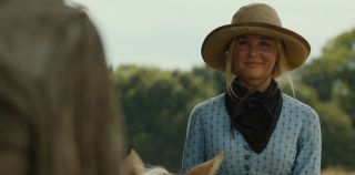Shea Brennan tak szybko nie odpuścił złodziejom, bo wie, że wszędzie czyhają na podróżników różnego rodzaju zagrożenia, a także śmierć. W otwierających scenach mogliśmy zobaczyć, jak kruche jest życie tych migrantów. Wystarczy chwila nieuwagi, złamana kończyna lub ugryzienie węża, żeby podróż dla poszczególnych osób zakończyła się tragicznie. Jednak największą trwogę wywoływała przeprawa przez rzekę, o czym wspominała Elsa, która znowu w poetycki sposób opisywała tę pełną niebezpieczeństw i dramatów wyprawę. Jej narracja sprawia, że nawet zwykła jazda na koniu jej matki stawała się czymś wyjątkowym. Na pewno podziw budził przepiękny kadr, gdy bohaterki jechały w stronę zachodzącego słońca. Nic ciekawego nie wydarzyło się w tych scenach z Elsą i Margaret. Ale właśnie estetyka obrazów, o którą tak dbają twórcy, powoduje, że te nudne wydarzenia przestają być nijakie i stają się ucztą dla oka.