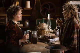 Karawana dotarła do Doan’s Crossing, która jest przygraniczną miejscowością między Teksasem a Oklahomą. Tutaj migranci mieli okazję uzupełnić zapasy, a także zatrudnić kuka i nowego kowboja w miejsce Ennisa. W tego pierwszego wciela się James Jordan, którego możemy kojarzyć z… Yellowstone. Gra tam Steve’a Hendona, a w 1883 będzie przygotowywać pożywienie podróżnym. Trzeba przyznać, że aktor czuje swoją postać i będzie mieć większe pole do popisu w tym serialu. W nowego kowboja wciela się Noah Le Gros i jak na razie stanowi niezły dodatek do fabuły. Coltonowi spodobała się Elsa, dlatego postanowił ruszyć z karawaną w drogę. Z kolei w miasteczku Margaret, po chwilach grozy z córką, postanowiła się nieco rozerwać ze sprzedawczynią sklepu. Nie był to porywający wątek, ale ona też miała prawo się odstresować. Szczególnie że twórcy w ten sposób też przełamali pewne schematy, ponieważ raczej na Dzikim Zachodzie oglądalibyśmy pijanych mężczyzn, a nie kobiety. Zresztą mina nieco zażenowanego Jamesa wiele mówiła.