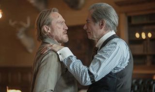 fot. Paramount+Doczekaliśmy się też konfrontacji między Jakem Duttonem a Donaldem Whitfieldem. Ten drugi znalazł sprytny sposób, aby w niedługim czasie zagarnąć ranczo na własność, wykorzystując pozycję biznesmena i bogacza. Timothy Dalton świetnie potrafi połączyć uprzejmość i zimne opanowanie z całkowitą bezwzględnością i arogancją. Sprawia, że jego bohater jest tak interesujący i wyrazisty. Wizyta u Duttonów, w której pokazał ohydne oblicze kapitalisty, była znacznie lepsza niż niepotrzebne sceny z prostytutkami. Perwersyjne napawanie się władzą wypadło słabiej niż ograbienie Duttonów z całej nadziei na lepsze jutro. Szok malujący się na twarzach Jake’a (Harrison Ford) i Cary (Helen Mirren) wzbudzał emocje oraz nienawiść do Whitfieldem, który wyrósł na doskonałego antagonistę tego serialu.