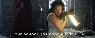 Bohaterki w książce były barwne i ciekawe, więc czuję się zawiedziona ich filmowymi wcieleniami. Sophia Anne Caruso ma co prawda kilka momentów, podczas których może się wykazać. Naprawdę spodobała mi się jej charyzma na ekranie, a przerysowana momentami gestykulacja idealnie oddawała klimat historii, której sercem od zawsze był humor i przesada. Ale Sofia Wylie właściwie nie miała czego zagrać. Ciężko mi nawet powiedzieć, jaki charakter miała mieć filmowa Agata. Pozbyto się jej kompleksów, fascynacji magią, zostawiono jedynie przebłyski zdrowego rozsądku, którego brakuje wszystkim innym mieszkańcom Akademii Dobra i Zła. I nie znaleziono nic, czym można by zastąpić stare cechy w adaptacji. Wobec tego jedna z najciekawszych książkowych protagonistek stała się na ekranie bardzo jednowymiarowa i płaska.