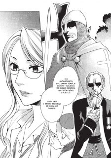 Miecz Shao Jun to produkcja znacznie bliższa klimatom znanym z Assassin's Creed niż recenzowana przeze mnie niedawno Pieśń chwały – i to nie tylko dlatego, że mamy tu do czynienia z pełnoprawnym Bractwem Asasynów i Zakonem Templariuszy. Autorka zadbała również o przemycenie do mangi elementów charakterystycznych dla tego uniwersum. Główna bohaterka pozbywa się swoich wrogów tak, jak w grze, wykorzystując do tego celu między innymi ukrywanie się w ciemnych zaułkach. W pewnym momencie obserwujemy nawet skok wiary, który przez lata stał się prawdziwą wizytówką tego cyklu. Oczywiście na uwagę zasługuje również cameo Ezio i pojawienie się Animusa. Niektórzy mogą uznać to za tani fanserwis, ale naprawdę przypadło mi to do gustu – wyłapywanie odniesień do produkcji Ubisoftu nie tylko wywołało uśmiech na mojej twarzy, ale też zachęciło do powrotu do trylogii Chronicles na konsoli.