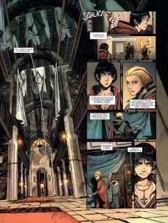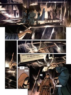 88 stron to teoretycznie sporo, jak na komiks opowiadający jedną samodzielną historię. Niestety w przypadku Ukrytej księgi taka objętość okazała się zdecydowanie niewystarczająca. Akcja leci do przodu w zawrotnym tempie – samo to nie byłoby niczym złym, ale w połączeniu z raczej prostymi do przewidzenia wydarzeniami trudno uznać to za zaletę. Jeśli gubimy się w tej opowieści, to nie dlatego, że jest ona tak złożona, rozbudowana i wielowątkowa, a dlatego, że toczy się zbyt pośpiesznie. Doskonałym przykładem jest wprowadzanie niektórych bohaterów. Ma się wrażenie, że są oni nagle wyciągani z kapelusza, bez żadnego wcześniejszego przedstawienia.