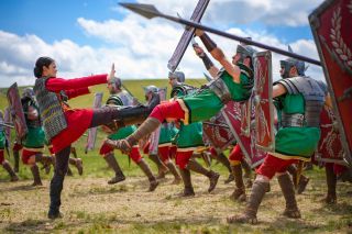 Asteriks i Obeliks: Imperium Smoka to już piąta aktorska ekranizacja przygód dzielnych Galów. I pierwsza bez Gerarda Depardieu. Twórcy (z przyczyn oczywistych) postanowili się go pozbyć i obsadzić w roli Obeliksa Gillesa Lellouche'a. Muszę przyznać, że dzięki bardzo dobrze wykonanej charakteryzacji zmiana aktora jest praktycznie niedostrzegalna. Dodajmy, że Gal o grubych kościach tradycyjnie przemawia w polskiej wersji głosem Wiktora Zborowskiego, więc widz naprawdę nie odczuje różnicy. W roli Asteriksa natomiast zobaczymy Guillaume'a Caneta, który jest również reżyserem i współautorem scenariusza. Bardzo sprawnie łączy wszystkie te funkcje, dostarczając nam ciekawą historię, choć nieodbiegającą mocno od naszych oczekiwań. Schemat jest niezmieniony. Galowie wyruszają z wioski, by ratować kogoś w nieznanym dla siebie kraju, po drodze zatapiają statek piracki, biją Rzymian, kłócą się między sobą i wracają do domu. Jednak Canetowi udało się wyciągnąć z tej historii trochę więcej. Wykrzesać potencjał komediowy, który nie jest wtórny i trafi zarówno do młodszych, jak i starszych widzów. Świetnie wypada konflikt pomiędzy Kleopatrą i Cezarem, a także Asteriksem i Graindemaisem, udającym Gala, by rozkochać w sobie księżniczkę. Przerzucanie się różnymi uszczypliwościami ma dobrze zaplanowane tempo komediowe. Żarty świetnie zostały też przetłumaczone na język polski. Nikt nie silił się tutaj na wciskanie żartów nawiązujących do obecnej sytuacji politycznej czy wydarzeń społecznych, jak to ma czasami miejsce w takich produkcjach. Twórcy polskiego dubbingu starali się trzymać kursu wyznaczonego przez poprzednie części. Oczywiście nie będę tutaj czarować, że Asteriks i Obeliks: Imperium Smoka dorównuje poziomem humoru Misji Kleopatrze, bo się nawet do niego nie zbliża. Ale i tak jest zabawnie. Powierzenie roli narratora Robertowi Makłowiczowi było strzałem w dziesiątkę. Kulinarny podróżnik świetnie się w tej roli sprawuje i dostarcza nam wielu charakterystycznych dla siebie opisów. Co najważniejsze, nie stara się wybić na pierwszy plan.
