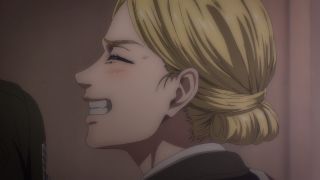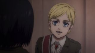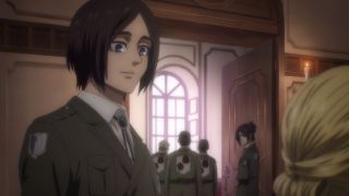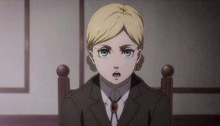 Wygląda na to, że Historia postanowiła się poświęcić dla dobra wyspy i zgodzić się na ten warunek. Jak się okazuje, w teraźniejszości bohaterka jest w ciąży, dlatego nie walczyła podczas ataku na Mare. Warto dodać, że w anime nastoletnia ciąża to rzadkość. Jest to kontrowersyjne, ale w końcu niewiele się różni od wysyłania dzieci na wojenny front. Ciekawi, kto jest ojcem dziecka, bo trudno uwierzyć w historię o koledze z dzieciństwa, który mieszkał na farmie.