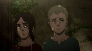 W nowym odcinku nie tylko pojawiła się Louise (a także przez moment Flegel), której losy połączyły się z walczącymi na śmierć i życie głównymi bohaterami. Powróciła również Kaya, czyli dziewczynka, którą w drugim sezonie Attack on Titan uratowała Sasha, o czym przypominała siekiera wbita w ścianę. Wpadli na nią Gabi i Falco, którzy uciekli z więzienia. Ten wątek działał na wielu płaszczyznach i emocjach. Wojownicy trafili na farmę rodziny Sashy, gdzie okazano im sympatię i troskę. To było całkowicie sprzeczne ze światopoglądem Gabi, która nie może uwierzyć, że „diabły z Paradis” mogą być dobrymi ludźmi. Jej zderzenie z rzeczywistością jest dobrze pokazane, dezorientacja uzasadniona i udowadniająca, jak duży wpływ na postrzeganie innych osób mają wbijane do głowy stereotypy, przekonania i nienawiść. Jeszcze lepiej to widać, gdy Gabi kłóci się z Kayą, która wypytuje ją, czym zawiniła jej pożarta przez tytana matka i dlaczego ma płacić cierpieniem za grzechy przodków. Poza tym przybysze z Mare też nie są bez winy, ponieważ pośrednio poprzez wypuszczanie tytanów na Paradis przyczynili się do śmierci kobiety. To była intensywna scena, dobrze obrazująca bezsensowność ksenofobii, bezpodstawne uprzedzenia do innych ludzi oraz niepotrzebną agresję wobec nich. I jest to też temat bardzo uniwersalny i powszechny, przy którym warto się na chwilę zatrzymać i zastanowić.