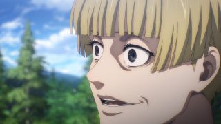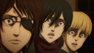 Fabuła tego epizodu średnio wciągała i znalazło się jeszcze parę mniej istotnych wydarzeń. Zobaczyliśmy, jak Armin próbował dotknąć kryształu Annie, co mogłoby przywołać wspomnienia Bertholdta. Dzięki temu pojawiła się dawno niewidziana Hitch, która go przed tym powstrzymała. Trzeba przyznać, że w wersji studia MAPPA trudno było ją poznać. Na usprawiedliwienie można powiedzieć, że wiernie oddali jej zmieniony wygląd z mangi, gdzie też uległ on przemianie. Co nie zmienia faktu, że lepiej prezentowała się w Wit Studio. Ważne, że ta postać też nie została zapomniana, tak jak to było z Kayą w poprzednim odcinku. Dbałość o szczegóły historii imponuje. Z kolei w scenie Mikasy z Azumabito, główna bohaterka wykazała się przenikliwością i oddaniem swoim przyjaciołom, odmawiając propozycji dołączenia do jej ludzi. To jest ta Mikasa, którą lubimy!