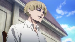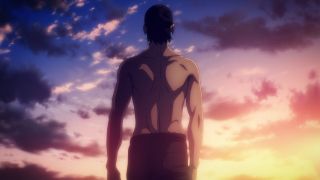 Po tym wydarzeniu stało się jasne, że Eren ma swoich zwolenników nazywających się Jaegerystami. Na Paradis istnieją wewnętrzne podziały, co też przeniosło się na nastroje wśród cywilów. Okrzyki, aby oddać swoje serce sprawie - które tak wbiły się w pamięć, gdy Erwin Smith je wykrzykiwał - źle brzmiały z ust tłumu. Wygląda na to, że Eren rzeczywiście wykorzystuje Jaegerystów do swoich celów. Nie dziwi, że na ich czele stał Floch, który czekał na niego z innymi rebeliantami gotowymi na każde poświęcenie i stworzenie Imperium Erdii. Nastąpiła wtedy jedna z bardziej oczekiwanych scen z mangi, gdy główny bohater zarzucał sobie płaszcz, będąc topless. O ile Wit Studio nie uległo fanserwisowi, bo ku wielkiemu rozczarowaniu fandomu nie pokazywano bez koszul ani Leviego, ani Erwina, tak MAPPA pozostała wierna materiałowi źródłowemu. I trzeba powiedzieć, że wyszło im to kapitalnie, bo naprawdę się postarali. Nie tylko dopieścili „sześciopak” Erena, na nowo rysując tę scenę w porównaniu do zwiastuna, ale jeszcze dodali piękne tło i kolory. Można te obrazki oprawić w ramkę – tak znakomicie się prezentowały.