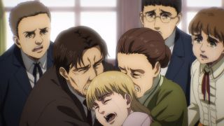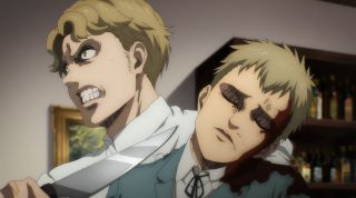 W odcinku zaskoczył również Eren, który zupełnie zwyczajnie pojawił się w rezydencji, aby porozmawiać z Mikasą i Arminem. Jego kamienna twarz, zimne spojrzenie i spokój przyprawiają o ciarki. Do tego nad bohaterami wisi groźba, że zamieni się w tytana. Ciekawi, co ma do powiedzenia swoim przyjaciołom i jak wytłumaczy im swoje bezwzględne postępowanie. O tym przekonamy się w kolejnym odcinku.
