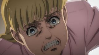 Ponadto nie tracą czasu również Jaegeryści, którzy umożliwili rozmowę Erena z Mikasą i Arminem. Zatrzymali też Hanji i pozostałych głównych bohaterów. Do tego upiorny uśmiech Flocha, który wiedział o „skażonym” winie, przyprawiał o irytację. Dzięki muzyce w końcówce odcinka narastały emocje i aż prosiło się, żeby Zeke użył swojej mocy na Żandarmach. To byłoby mocarne zakończenie tego świetnego epizodu, ale studio MAPPA słusznie woli podążać zgodnie z kolejnością wydarzeń z mangi.