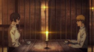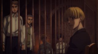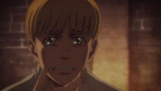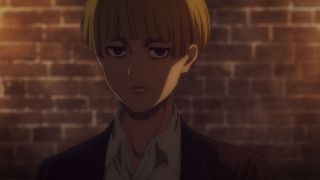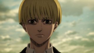 Następnie akcja przeniosła się do malowniczej Shiganshiny, której panorama robiła wrażenie, ponieważ została pięknie narysowana. Po tym, jak poznaliśmy plany Erena i Zeke’a, przyszedł czas na wyjawienie celu działań Yeleny. Można nie lubić tej dość specyficznej bohaterki, ale trzeba przyznać, że jej przebiegłość w przejęciu kontroli nad Paradis poprzez współpracę z braćmi Jaegerami imponuje. Zajęła się każdym aspektem, bo zebrała fanatycznych zwolenników Erena oraz przejęła władzę nad wojskiem poprzez wino z płynem rdzeniowym Zeke’a. A do tego ma poparcie ludności Paradis. I nie robi tego dla samej władzy, ale po to, by ocalić świat od nienawiści i podziałów, a także z miłości do siły jasnowłosego Jaegera. Chyba najbardziej adekwatną reakcją na to, czego się dowiedzieliśmy, była ta Armina, który udawał wzruszenie słowami Yeleny. Dawno nie oglądaliśmy pokazu jego dziwacznych i upiornych min.