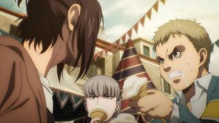 W odcinku obejrzeliśmy również sympatyczne sceny z Gabi i Falco, którzy rywalizują o moc Opancerzonego Tytana. Dziewczyna ma charakterek, a chłopak wyznał, że na sercu leży mu jej dobro. Do tego Reiner nie szczędził pieniędzy na przekąski dla dzieciaków, co też bawiło, bo mocno się wykosztował. Ale nie można oprzeć się wrażeniu, że to tylko cisza przed burzą i ta sielanka zostanie brutalnie przerwana, by wydarzenia uderzyły ze zdwojoną siłą i jak najbardziej szokowały. Tak jak wtedy, gdy na Murze Maria pojawił się Kolosalny Tytan i na zawsze zmienił życie głównych bohaterów.