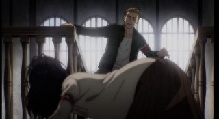 Jednak w tym epizodzie najbardziej ciekawił Eren, który wykorzystywał Falco do kontaktowania się ze światem zewnętrznym (możemy się domyślać z kim). Świetna też była scena, gdy na ławeczce spotkał się ze swoim dziadkiem, który żałuje swojego zachowania wobec Grishy. Jego szaleństwo zostało bardzo dobrze zanimowane. W tym wypadku studio też się postarało.