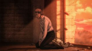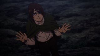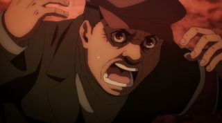 Przenieśliśmy się również z powrotem do Flocha, który wprowadzał reżim Jaegerystów, ogłaszając, że udało im się spełnić marzenie odzyskania wolności. To ważne, ponieważ wizja i pojęcie wolności ma fundamentalne znaczenie dla całej fabuły w Attack on Titan oraz celu, jaki chciał osiągnąć Eren. A była ona pojmowana różnorako przez bohaterów - Armina czy Jeana. Ten ostatni był zdruzgotany informacją, że chłopak zdradził swoje zamiary Jaegerystom, a nie swoim przyjaciołom, a także że nie ma już powodu do walki. Ponadto szokowała scena, w której Floch z zimną krwią zastrzelił jednego z ochotników. W mandze wyglądała bardziej drastycznie, a w anime została mocno ocenzurowana. W tym przypadku nie była potrzebna nadmierna eskalacja makabry, ponieważ osiągnięto cel, żeby pokazać chory fanatyzm Flocha i jego ludzi.