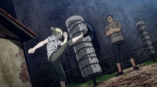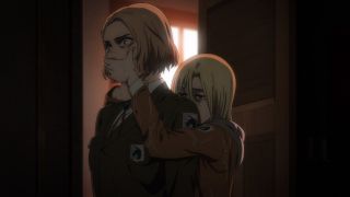 Niespodziewanie przeszliśmy do opowieści Annie o jej motywacjach oraz jej przeszłości. Moment na retrospekcje nie był zbyt fortunny, bo wiele ciekawszych wydarzeń rozgrywało się w innych miejscach. Natomiast sama historia wiele wyjaśniła. Okazało się, że miała związek z jej przybranym ojcem, panem Leonhartem, który ją wyszkolił, żeby mogła zostać Wojownikiem. Pewne przebłyski z tego oglądaliśmy już nawet w poprzednich sezonach, ale teraz zobaczyliśmy pełną wersję wydarzeń, które nabrały sensu. Jej wymagający i sadystyczny ojciec z jednej strony był dumny z tego, co osiągnęła Annie (szczególnie gdy spuściła mu łomot), z drugiej też pokazał ludzką twarz podczas ich pożegnania. Jednak kochał ją jak własną córkę, dlatego ta scena nawet poruszała. Zmotywowała bohaterkę do działania, żeby wypełnić obietnicę powrotu do ojca. Zaowocowało to później wieloma trupami z tego powodu, co nie zostało przemilczane. Annie przyznała, że wyrządziła dużo zła i krzywdy, ale jest gotowa na więcej. To oznacza, że zobaczymy ją w widowiskowej akcji w Attack on Titan, co cieszy, bo można było stęsknić się za tą bohaterką.