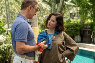 Podoba mi się to, że Mike White w niewymuszony sposób łączy wszystkie sezony. Tu nawiązaniem do pierwszego jest Belinda (Natasha Rothwell), która pragnęła otworzyć swój własny biznes. Miała jej w tym pomóc dawna klientka Tanya. Ta jednak zniknęła bez śladu, a wraz z nią marzenie o finansowej niezależności. Jest jeszcze postać Grega Hunta (Jon Gries), który – ukrywając sekret i pochodzenie swojej fortuny – stara się rozpocząć na nowo życie w Tajlandii. Jednak z ogromnymi pieniędzmi wiąże się także obawa, że się je straci. Bohater myśli, że osoby z jego otoczenia są takie same jak on – pazerne, interesowne i nastawione na profity. Dlatego do końca nie wierzy w miłość swojej dużo młodszej partnerki, granej przez Charlotte Le Bon.