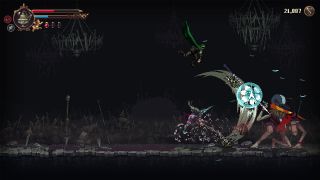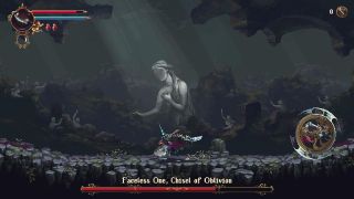 fot. Team17Warto natomiast zaznaczyć, że jakkolwiek nie wzmocnilibyście Pokutnika, to dzieło studia The Game Kitchen i tak będzie bardzo wymagające. Nawet podstawowi wrogowie potrafią srogo dać w kość. Atakują szybko i bezwzględnie. Często nie dają w ogóle chwili na wytchnienie. Regularnie zdarzają się momenty, w których nie ma nawet czasu, by wychylić łyk leczniczej mikstury. Konieczne jest uczenie się ich ruchów, by wiedzieć, jak na nie zareagować i na co możemy sobie pozwolić. Na szczęście punkty kontrolne (zazwyczaj) rozłożone są całkiem rozsądnie, co w połączeniu z licznymi skrótami sprawia, że nie musimy się za bardzo męczyć, by wrócić na miejsce naszego zgonu. Śmierć nie ma też żadnych poważniejszych konsekwencji. Po prostu trzeba pogodzić się, że jest to nieodłączną częścią tego tytułu.