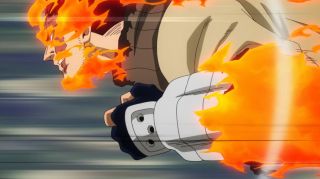W rezultacie Deku, Bakugo i Shoto już w pierwszych minutach stażu ruszyli za Numerem Jeden ratować mieszkańców miasta przed Starservantem. O ile animacja przy samym Endeavorze i złoczyńcy była w porządku, tak przy zatrzymaniu jego pomocników z zasadzki prezentowała się nadzwyczaj słabo. Ten kadr, ujęcia i samo zdarzenie, w które jeszcze wmieszał się Hawks, wyglądało niezwykle przeciętnie. W całym odcinku kreska była kiepska i niedopracowana, poza kilkoma lepszymi momentami. Trochę to rozczarowujące, bo nieco psuło przyjemność z oglądania anime, które prawie zawsze trzyma wysoki poziom. Oby w kolejnych epizodach to się nie powtórzyło.