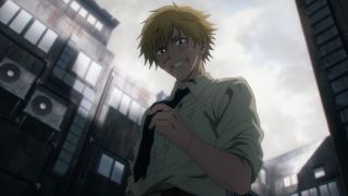 Następnie przenieśliśmy się do kwatery głównej łowców demonów, gdzie poznaliśmy Akiego Hayakawę, którego zadaniem jest pilnowanie Denjiego. Jak to bywa w niemal każdym anime, musi być zachowany kontrast między bohaterami. Dlatego naszą barwną główną postać trzeba było zestawić z markotnym i ponurym Akim, który jest bardziej cool. Oczywiście ich relacja się nie układa, ale Denji nie dał sobą pomiatać, co okazał Hayakawie w bolesny dla niego sposób. Raczej nie było tu nikomu do śmiechu, nawet widzom. Ale ta scena daje też do zrozumienia, że w tym anime nie będzie subtelności.
