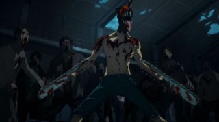 Druga połowa odcinka to już emocjonujące starcie Denjiego z szefem yakuzy i jego zombie. Demon, podobnie jak pomidorowy potwór, wygląda odrażająco. Zwrot akcji ze śmiercią głównego bohatera, który odradza się jako Chainsaw Man, jest zaskakujący. Dokonuje szaleńczej rzezi na yakuzie, którą wspaniale zanimowało studio MAPPA. Zresztą animacja całego pierwszego odcinka jest kapitalna. Zarówno statyczne momenty, jak i dynamiczna akcja wyglądają obłędnie. Wręcz na poziomie kinowym!
