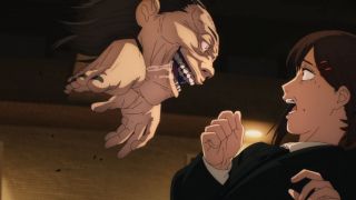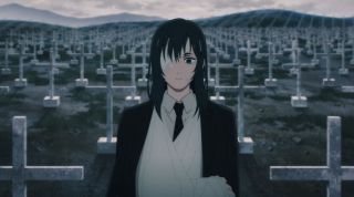 fot. MAPPASzybko przekonaliśmy się, dlaczego Makima tak chętnie obiecała chłopakowi, że spełni jego dowolne życzenie. Fabuła ruszyła dalej i w końcu dowiedzieliśmy się, że głównym złoczyńcą jest demon broni palnej. Pokazano nam to za sprawą retrospekcji Akiego, który stracił brata i rodziców w brutalnym ataku tego potwora. Zniszczenie domu zaskakiwało, a animacja imponowała. W anime łatwo można było się domyślić, że Aki to ten starszy chłopiec, więc zabrakło elementu tajemnicy i niespodzianki. Natomiast pozostał aspekt emocjonalny, gdy stracił rodzinę, a następnie został przydzielony do Himeno. Okazuje się, że ta kobieta to dość tragiczna postać, która straciła już kilku swoich partnerów, a także zawarła pakt z demonem. Ponury nastrój tej sceny potęgował cmentarz, na którym się znajdowali. Przy okazji został wprowadzony do historii Kishibe, którego dubbinguje Kenjiro Tsuda, posiadający jeden z najbardziej charakterystycznych głosów, jakie możemy usłyszeć w wielu produkcjach anime. Wydaje się on dobrym wyborem do tej enigmatycznej postaci.