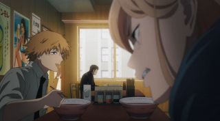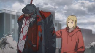 Po tych pikantnych wydarzeniach z nocy Himeno i Denji zasiedli do śniadania na tarasie. Trzeba przyznać, że było to bardzo urokliwe miejsce. Bohaterowie zawarli koleżeńską umowę, ale nic istotnego poza tym się tu nie wydarzyło. Naprawdę można było odnieść wrażenie, że twórcy anime za bardzo to wszystko przeciągają. Ale to była tylko cisza przed burzą, bo druga połowa odcinka wynagrodziła leniwe tempo.