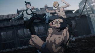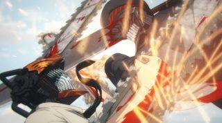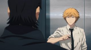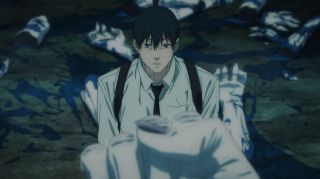 fot. MAPPATam do akcji wkroczyła czwórka nowych bohaterów, a raczej demonoidów. Przedstawiono ich za pomocą sekwencji walki z zombi. Jest to grupka dziwacznych i przerażających indywiduów. Jedynie anielski demon wydaje się w miarę ludzki, bo nie przepada za przemocą. Ma też ciekawą moc, którą warto zapamiętać. Na pierwszy rzut oka wygląda jak dziewczyna, ale to postać płci męskiej (mimo że podkłada mu głos Maaya Uchida). Studio MAPPA – tak jak mangaka Tatsuki Fujimoto – na początku nowej historii postanowiło zmylić widzów. Szkoda, że cała czwórka nie odegrała większej roli w starciu. Również Power tylko przez chwilę zabłysnęła, atakując zombi, co pozostawia pewien niedosyt.