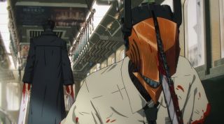 fot. MAPPAStudio MAPPA pod względem animacji bardzo się przyłożyło do walki Denjiego z Katana Manem. Była ona krwawa, brutalna, ale też niezwykle widowiskowa. Przeniosła się nawet na dach pociągu, a potem do jego środka, co było ciekawym miejscem na ostateczne rozstrzygnięcia. Denji niczym Czarny Rycerz z Monty Pythona i Świętego Graala nie poddawał się i dzielnie walczył z Samurajskim Mieczem. Kishibe dobrze go wyszkolił, bo wykorzystał piłę łańcuchową na swojej nodze. To było zaskakujące i niepozbawione drastycznych obrazków.