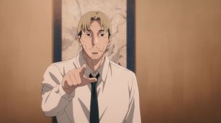 W dalszej części odcinka oglądaliśmy fragment treningu Kishibe z Denjim i Power. Okazuje się, że przywiązał się do swoich „zabawek”. Wskazał też, że Makima nie zapobiegła zasadzce na łowców i nazwał ją kłamcą. Jak widać, nie tylko Himeno i Aki uważają tę bohaterkę za kogoś groźnego. Trudno się dziwić, skoro później przyparła członków yakuzy do muru w bardzo makabryczny sposób. Muzyka w tle dodała emocji tej okrutnej scenie. Wracając do Kishibe – mężczyzna nie miał okazji zaprezentować swoich umiejętności w ataku na wieżowiec, w którym ukrywali się Sawatari, Samurajski Miecz i jego ludzie. To trochę rozczarowało.