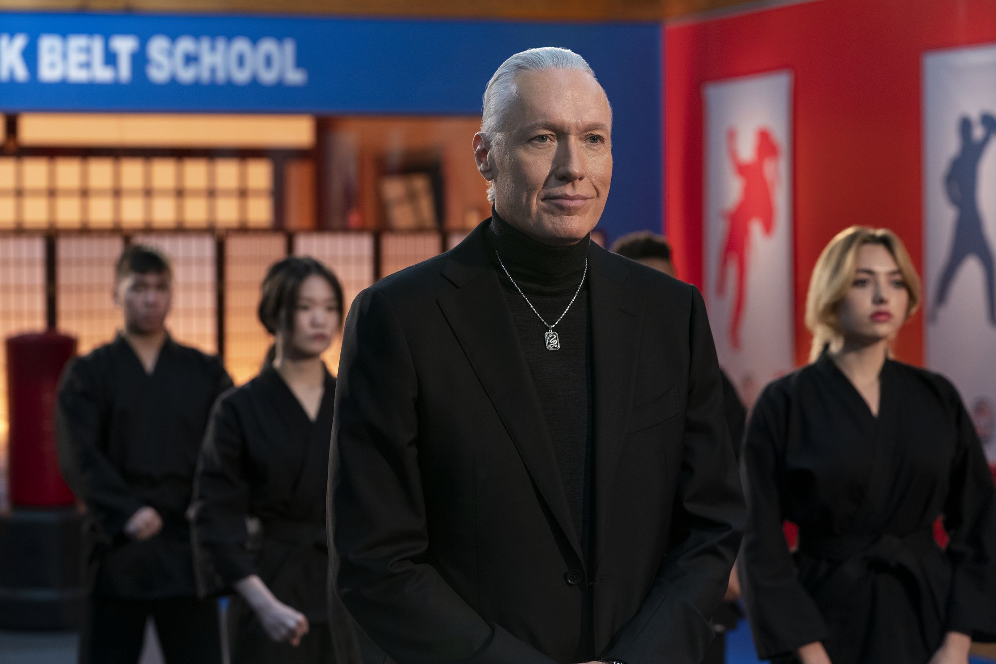 fot. NetflixOd połowy 5. sezonu akcja podkręca tempo, a spory stają się bardziej intensywne. Historia przybiera też niezwykle mroczny charakter za sprawą Terry’ego Silvera, który ma imperialistyczne zapędy związane z Cobra Kai. Thomas Ian Griffith błyszczy w roli złoczyńcy, który jest niesamowicie przebiegły. Z większym wyrafinowaniem prowadzi swoje psychologiczne gierki, ale wciąż można dostrzec w jego oczach ten błysk szaleństwa z Karate Kid 3. Dobrze, że obrano właśnie taką drogę dla tej postaci. Po prostu jego metody szkolenia, które polegały na praniu mózgów młodych adeptów sztuk walki, budziły kontrowersje. Thomas Ian Griffith wykreował znakomitego antagonistę, który nie tylko góruje nad wszystkimi wzrostem, ale też dominuje swoją postawą, pewnością siebie i bezwzględnością. To niebezpieczny człowiek, który potrafi zrobić krzywdę, nie przebierając w środkach. Za sprawą Silvera chyba po raz pierwszy w serialu można było poczuć, że walki toczą się na śmierć i życie. To było najbardziej odczuwalne w starciu z Chozenem, bo panowie użyli broni, aby rozstrzygnąć, kto jest lepszy. Była to walka bardzo widowiskowa i krwawa!