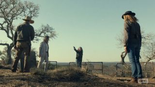 Ciekawie rozwijał się wątek grupy bohaterów podróżującej opancerzonym pojazdem. Zszokował Daniel, który tak zwyczajnie zastrzelił sobie Rolliego, a po chwili w równie mało widowiskowy sposób Charlie postrzeliła Rileya. Oczywiście bohaterowie mieli słuszność w swoich czynach, ale ta surowość sytuacji odebrała wagę ich odejściu. Nawet ta bezceremonialność nieco bawiła, ale - znając Rubéna Bladesa - zapewne to był zamierzony efekt. W każdym razie ich wątek rozwijał się niezbyt interesująco, mimo że akcja pędziła na złamanie karku. Ostatecznie zakończył się fajnym akcentem, gdy na ratunek przybył helikopter CRM (Armii Republiki Obywatelskiej). Na pewno lepsze to niż Morgan i Grace kryjący się pod kołami samochodu, którzy wyszli z wybuchu bez szwanku. Zabrakło w końcówce postawienia wyraźnej kropki, ponieważ ostrzał wciąż trwał.