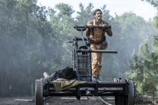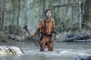 fot. AMCWarto też pochwalić scenografów, operatorów kamery i montażystów tego odcinka. Akcja rozgrywała się w efektownych miejscach – już wcześniej wagon medyczny robił wrażenie, a ruiny opuszczonego budynku prezentowały się interesująco. Na uwagę zasługują sceny, gdy bohaterowie płynęli motorówką, a potem łódką. Oglądaliśmy wiele ujęć, co pozwoliło zbudować wrażenie ciągłej sceny, ponieważ tło nie odwracało uwagi, a postacie były odpowiednio oświetlone. Nie było to łatwe zadanie, ponieważ przez korony drzew co jakiś czas przebijało się słońce. Pod względem technicznym i wizualnym ten epizod Fear the Walking Dead imponował.