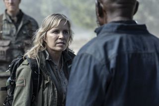 fot. AMCScenariusz szóstego odcinka był równie bzdurny. Co chwilę zza drzew wyskakiwały niespodziewanie postacie, a także dochodziło do dziwnych i pozbawionych sensu konfrontacji, które w ogóle nie emocjonowały. Niektóre to nawet mogły powodować śmiech i zażenowanie – jak ta, gdy dzieciaki i Ben pokonały grupę uzbrojonych rodziców na czele z Danielem, a potem Mo, Morgan i Madison po prostu przekonali ich, aby odpuścili. Ani trochę nie wzruszała śmierć Fincha, a po Austinie Amelio i Christine Evangelista było widać, że grali jak na autopilocie. Trudno im było wycisnąć z siebie jakieś emocje. Z kolei Jenna Elfman po prostu przyjęła groźną minę i zrobiła, co do niej należało.