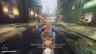 Na kilka dni przed premierą do sieci trafiła informacja, że Gotham Knights będzie działać w 30 klatkach na sekundę na konsolach obecnej generacji, PlayStation 5 i Xbox Series S/X. Z przykrością muszę to potwierdzić: rzeczywiście zabrakło jakiegokolwiek trybu wydajności czy opcji odblokowania płynności. A szkoda, bo przemierzanie Gotham i oglądanie licznych pojedynków z pewnością robiłoby lepsze wrażenie w 60 FPS. Na pocieszenie mogę jedynie powiedzieć, że przynajmniej widać, dlaczego się na taką blokadę zdecydowano. Gra jest szalenie efekciarska: mnóstwo tu efektów cząsteczkowych, takich jak deszcz czy dym, a światła odbijają się w mokrych od opadów ulicach.