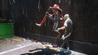Podczas eksploracji dzielnic Gotham niejednokrotnie przyjdzie nam spuścić komuś łomot. System walki tylko na pierwszy rzut oka przypomina ten z serii Arkham. W praktyce jest on zupełnie inny i łączy go z nim jedynie możliwość zadawania słabszych i mocniejszych ciosów (poprzez przytrzymanie przycisku na kontrolerze). Kompletnie zrezygnowano z możliwości parowania i kontrowania ciosów, zastępując to unikami. Zdecydowanie trzeba się do tego przyzwyczaić, bo nawet gdy uciekniemy przed jednym atakiem, nie mamy gwarancji, że zaraz nie trafimy pod pięść kolejnego oponenta. Oprócz tego mamy możliwość wykorzystywania ataków dystansowych: w ten sposób możemy eliminować przeciwników z większej odległości lub na przykład przycelować w wybuchowe beczki, by pozbywać się całych grup.