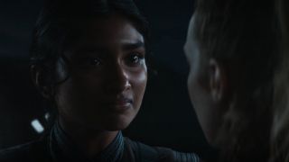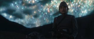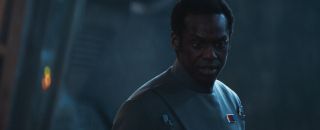 Napięcie budowane jest też przy pomocy muzyki, która świetnie zgrywa się z wymyślonymi na ten odcinek konceptami. Jednym z nich jest pomysł na wrzucenie bohaterów w przebraniach na stronę wroga. Strategia stara jak świat, ale udaje się to pomysłowo ograć, bez klisz i sytuacji, w których ktoś daje się łatwo złapać. Ponieważ dobrze znamy plan naszej drużyny, możemy z większym zainteresowaniem śledzić ich poczynania. Kibicujemy im, chociaż dobrze wiemy, że musi przyjść moment, kiedy sprawy wymkną się spod kontroli. Może nie jest to specjalnie zaskakujące, ale wszystko poprowadzono sensownie. Nawet jeśli wkradł się techniczny chaos przy kręceniu sekwencji strzelaniny, to scenariuszowo wszystko było od początku do końca klarowne. W tej fabule nic nie dzieje się wyłącznie po to, żeby pchnąć akcję do przodu. Do tego misja przeplatana jest krótkimi spojrzeniami na lud Aldhani, który celebruje swoje widowiskowe święto nazwane Okiem. Aspekt kulturowy od początku był istotny dla tego rozdziału. Całość została kapitalnie nakręcona, a zjawisko kosmiczne sprawiło, że z zapartym tchem oglądałem pościg szturmowców za statkiem Andora i jego ekipy.