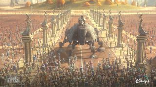 Infiltracja placówki wyszła całkiem pomysłowo, bo twórcom udało się dobrze wykorzystać maszynę kroczącą AT-TE. Przewijała się ona przez Wojny Klonów, a także była dostrzegalna w Trylogii Prequeli, ale zasadniczo nigdy nie mogliśmy odczuć, że to efektywne narzędzie destrukcji i wojny. Zawsze było to dość bezosobowe narzędzie w odróżnieniu od klimatycznego, charakterystycznego AT-AT (a także AT-ST), których znaczenie i moc w Oryginalnej Trylogii były nie do zakwestionowania. Tutaj użyto tego z pomysłem podczas pościgu wąskimi uliczkami miasta. Dzięki temu scena akcji zyskała rozrywkowy charakter.