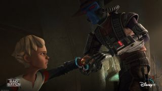 Kim jest Omega? To pytanie jest podstawą fabularną serialu Gwiezdne Wojny: Parszywa zgraja obok innych ważnych elementów budujących ciekawą historię postaci ze Star Wars. Wiemy, że podobnie jak oddział jest ona nietypowym klonem. Wiemy też, że wszystkim na niej zależy z różnych przyczyn: czy to klonerom z Kamino, czy też samemu Imperium. To zbudowało ciekawy wątek pogoni i tajemnicy, który dobrze napędzał ten serial - zwłaszcza gdy pojawiła się Fennec. 8. odcinek idzie za ciosem,wprowadzając Cada Bane'a, czyli jednego z najbardziej charyzmatycznych łowców nagród Gwiezdnych Wojen. Ta postać marnowała się i miejmy nadzieję, że po tym występie znajdzie się dla niej więcej miejsca, bo choć osadzony jest w przyjemnym stereotypie, świetnie jest on wykorzystywany na ekranie. W obu odcinkach sprawdza się znakomicie, bo twórcy nie dopasowują konwencji, by postać osłabiać czy ogłupiać. Dlatego ogromny plus za scenę konfrontacji z Hunterem, którą Bane wygrywa bez większego wysiłku, porywając Omegę. To jest ważne, gdy twórcy odchodzą od konwencji animacji dla dzieci, dodając historii uniwersalności i dojrzałości - tego typu sceny dobrze to budują.