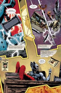 Aaron utrzymuje styl swoich opowieści i wyciąga z tego najlepsze elementy – łączy widowiskowe sceny akcji ze złożoną przypowieścią o wartościach, moralnych konfliktach i założeniach na temat boskiego funkcjonowania w świecie. Komiks jednocześnie cierpi na pewną skrótowość. Starcie Thora i Lokiego odwołuje się do kompetencji czytelnika. Musimy pogodzić się z zaserwowanym dość szybko twistem fabularnym. W drugiej połowie łapie też zadyszkę, bo ogromne rozmiary i skala wydarzeń powodują lekki chaos narracyjny – trudno rozeznać się w miejscu i czasie akcji. Niejasne jest również rozlokowanie bohaterów. Szczególnie drugi wątek wnuczek Thora nie jest tak ciekawy i nie daje szans tym bohaterkom na zyskanie autonomicznych cech charakteru. Są trochę jak Hyzio, Dyzio i Zyzio ze starych komiksów o Kaczorze Donaldzie i wyróżniają się jedynie ekwipunkiem.
