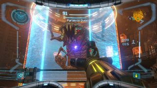 fot. NintendoPoziom trudności to zresztą bardzo ciekawa sprawa w Metroid Prime. Mogłoby się wydawać, że z uwagi na automatyczne celowanie (wystarczy nacisnąć lewy spust, by Samus namierzyła wroga), walka nie będzie sprawiać żadnych trudności. Deweloperzy zadbali jednak o to, by na graczy czekało sporo zróżnicowanych wyzwań. Doskonale widać to w przypadku bossów. Pojedynki z nimi wyglądają jak starcia z klasycznych, pierwszoosobowych strzelanek, ale w rzeczywistości mają sporo z gier… logicznych. Każda taka walka przypomina zagadkę, którą musimy rozwiązać. Znalezienie odpowiedniego sposobu na nich jest niemniej ważne niż zwinne palce i szybkość reakcji.