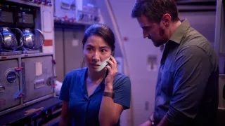 Lesley Sharp zagrała twardą i niedającą się zakrzyczeć szefową MI5. Kobieta musi stanąć na głowie, żeby opanować sytuację po tym, jak kolejne osoby giną w samolocie transportującym Nolana i innych naukowców z powrotem do Pekinu. Jing Lusi, która wciela się w detektyw Hanę Li, też jest jasnym punktem serialu. To kobieta wrażliwa, ale trzymająca rękę na pulsie. Twarda, zdecydowana, rozsądna i przede wszystkim dobra. To nie oznacza, że od razu ufa Nolanowi, co bardzo mi się spodobało. Ich relacja jest niełatwa i rozwija się na przestrzeni sezonu. Bohaterka znajduje się w arcytrudnym położeniu – jest zamknięta w samolocie, w którym dochodzi do morderstw. Musi nie tylko pilnować oskarżonego, ale też dbać o bezpieczeństwo innych osób na pokładzie.