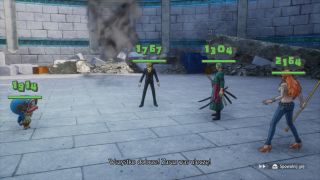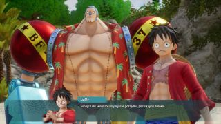 fot. Bandai NamcoBacktracking boli jeszcze bardziej, gdy uświadomimy sobie, jak duży potencjał miała cała reszta. Załoga Luffy'ego ma różne umiejętności, które możemy wykorzystać do odkrywania nowych dróg czy poszukiwania sekretów. Bohater w słomianym kapeluszu może na przykład wykorzystywać swoje elastyczne kończyny i przyciągać się w trudno dostępne miejsca, Zoro potrafi przecinać metalowe drzwi, a Franky jest w stanie budować mosty. Wszystko to mogłoby sprawiać sporo frajdy, gdyby nie zmęczenie, jakie towarzyszy bieganiu od znacznika do znacznika. Czasami przeszkadzają również ograniczenia w postaci niewidzialnych ścian (bohaterowie potrafią skakać, ale często nawet niewielkie przeszkody są dla nich nie do pokonania) czy kompanów, którzy nie pozwalają nam udać się w inną stronę niż ta wyznaczona przez fabułę.