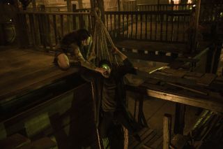 Iko Uwais powraca w tym filmie jako główny bohater, ale też jako choreograf walk. Efekt wywołuje mieszane odczucia pod każdym względem. Choreografia jest dość schematyczna (sekwencja określonych ciosów ciągle powtarzalna w tym samym tempie), więc ze strony Uwaisa i spółki mamy szereg dość oczywistych schematów, które po którejś walce za bardzo rzucają się w oczy. Nie przeczę jednak, że pod tym kątem zdecydowanie jest lepiej niż w Wu Assassins, bo jest w tym więcej kreatywności, lepsza praca kamery (reżyser Roel Reine czasem świetnie się bawi!) oraz jakiś rozrywkowy charakter. Problem jest taki, że gdy Uwais czy Tan, panowie o na pewno wartościowych umiejętnościach w sztukach walki, walczą ze zwykłymi zbirami, wygląda to nieźle, ale gdy już z kimś, kto ma umiejętności (np. postać grana przez Juju Chan), prezentuje się to fatalnie i staje się popisem marnowania potencjału. A już kuriozalnie wygląda to, jak twórcy robią zabijaków z dwóch postaci granych przez aktorów niemających żadnego pojęcia o sztukach walki, co jedynie pogłębia problem i zalewa nas sztucznością.