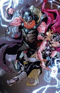 Marvel NowPrzedstawiona historia nie jest zatem bez znaczenia dla większej całości, skrzętnie budowanej przez Aarona. Znowu możemy mieć wrażenie, że to pewnego rodzaju wstęp i zapowiedź nadchodzących wydarzeń, ale to całkiem solidna przystawka. Starcia Thor z Thorem Wojny są niezwykle widowiskowe i duża w tym zasługa odpowiedzialnych za rysunki Russella Dautermana i Valerio Schiti. Czujemy siłę każdej błyskawicy i każdego gromu spadającego na torsy potężnych bohaterów. Dominacja innej stylistyki względem poprzednich tomów jest zatem uzasadniona, bo jeśli chodzi właśnie o boski bój dwóch właścicieli potężnych młotów, to właśnie taka kreska i taki sposób ilustrowania walk jest znakomity. Interesująco wypada też jubileuszowy siedemsetny zeszyt serii, któremu towarzyszą rysunki Daniela Acuny, Olviera Coipela, Mike'a del Mundo oraz Waltera Simonsa. Scenariuszowo przedstawione wątki wypadają zabawnie, momentami intrygująco.