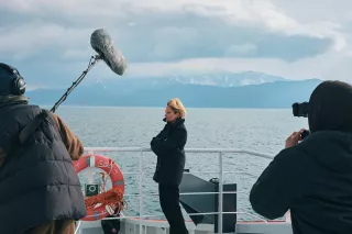 Zdjęcia w filmie Próba łuku same w sobie stają się bohaterem. Mamy bowiem archiwalne ujęcia jednego z bohaterów z lat 90., dokumentalne nagrywki w trakcie wyprawy bohaterów oraz pewne osobliwe momenty, które nasycone kolorami dają chwilę wytchnienia od tego, co się dzieje i co oglądamy. Ten miks trzech różnych podejść w połączeniu z pokazaniem greckiej wyspy w mroźnym lutym, staje się bardzo trafnym zamierzeniem, doskonale współgrającym z opowiadaną historią. Okolica nie jest słoneczna i pełna turystów, jak sobie wyobrażamy rejony Grecji, ale bardzo surowa, a mroźne kolory doskonale to podkreślają. To jest pięknym odzwierciedleniem tego, co się dzieje wewnątrz Marty, w którą wciela się Marieta Żukowska i doskonale współgra z wydarzeniami.